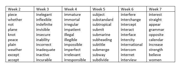 Y3/4 Spellings - Autumn Term 1